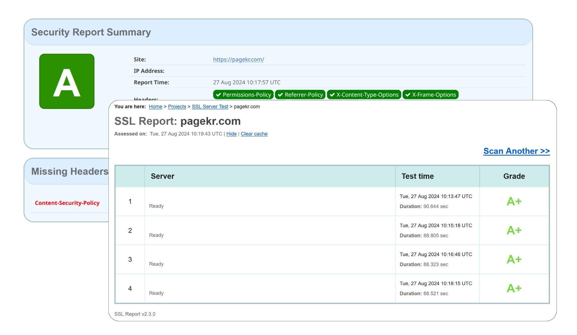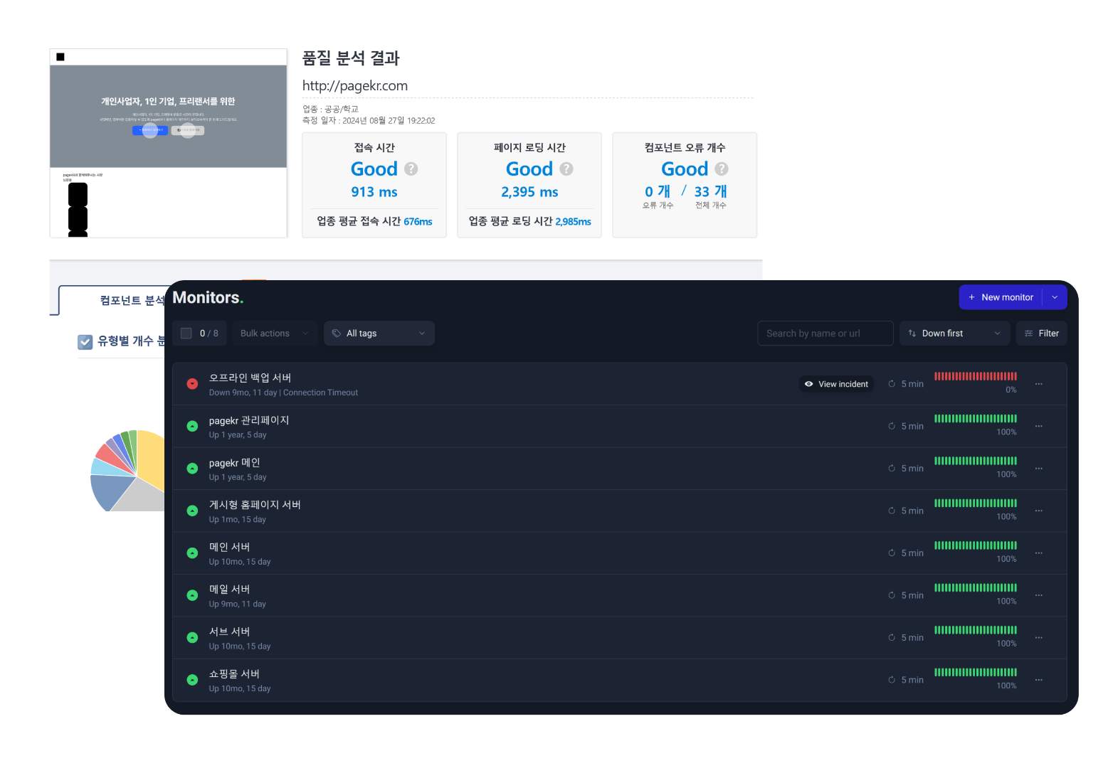 자동 모니터링과 백업 서버를 통한 99.99%의 작동 시간의 안정적인 pageKR 서비스를 이용해보세요.